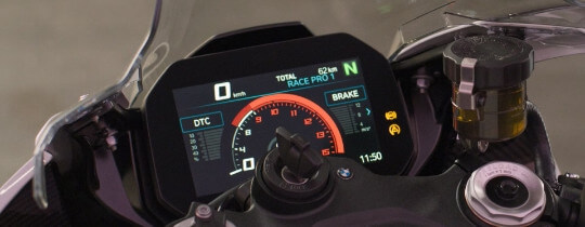 Indo para o pit lane depois de algumas voltas na pista de corrida: a última tela usada é sempre exibida depois que você desliga/liga a ignição. Isso ajuda você a se concentrar e permanecer focado na pilotagem. A tela Pure Ride e as três telas Race diferentes estão disponíveis dependendo da sua preferência. O sistema exibe uma rotação máxima adequada quando o motor está frio. O shift-light programável indica o melhor momento para as trocas de marcha. Graças ao painel TFT de 6.5", você pode visualizar rapidamente todas as outras configurações também.